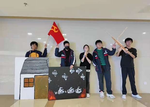 融创C—小小红军之旅 八4 陈柏如 我们一组同学了解了相关历史之后,编了一个抗战小短剧,还去木工和金工课程那里学习,做了一些需要的道具。我们的演出很顺利、很精彩!
