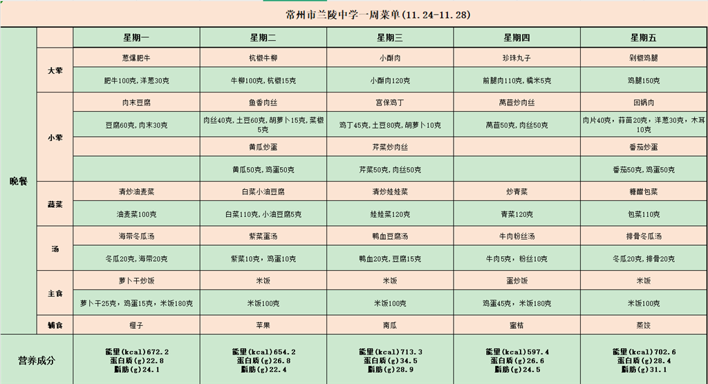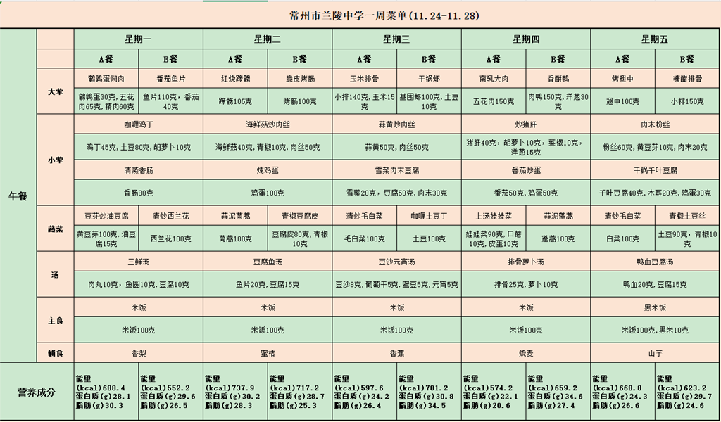 食堂菜单(11.24-11.28)